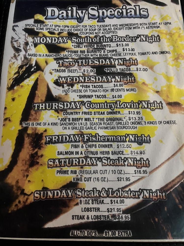 Weekly themed nights like Taco Tuesdays and Fish Fridays ensure there's always something different to savor. Overall, the menu reflects both comfort and tradition with inviting options for all.