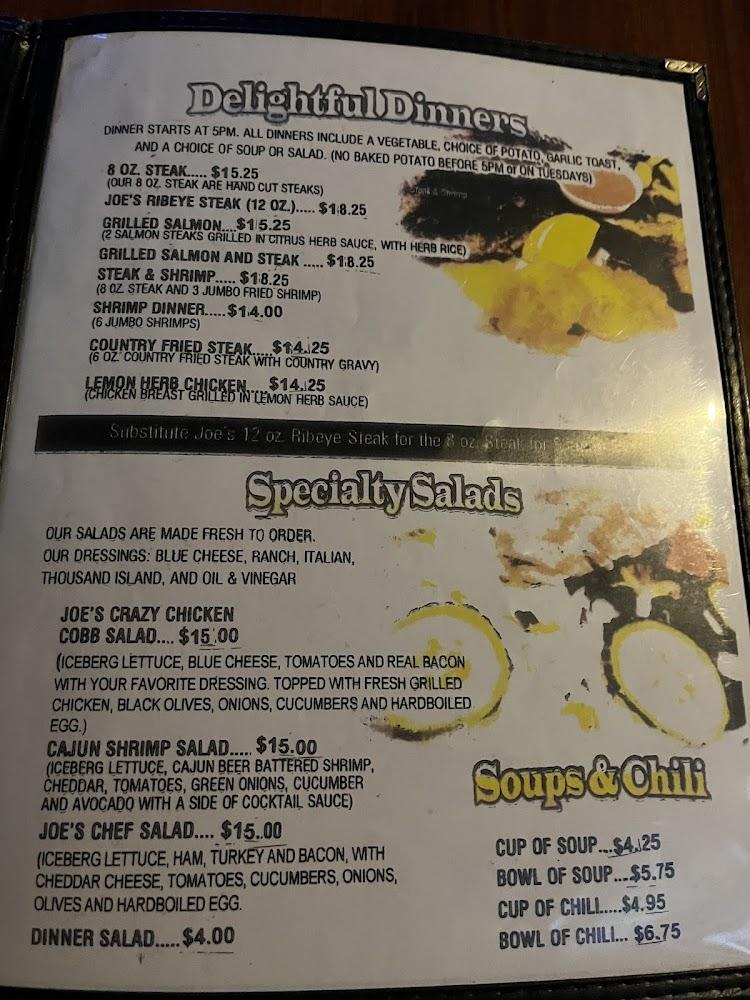 Joe’s Bar & Grill presents a diverse menu catering to various tastes. From classic appetizers like hot wings to hearty dinner options, food lovers find plenty to enjoy.